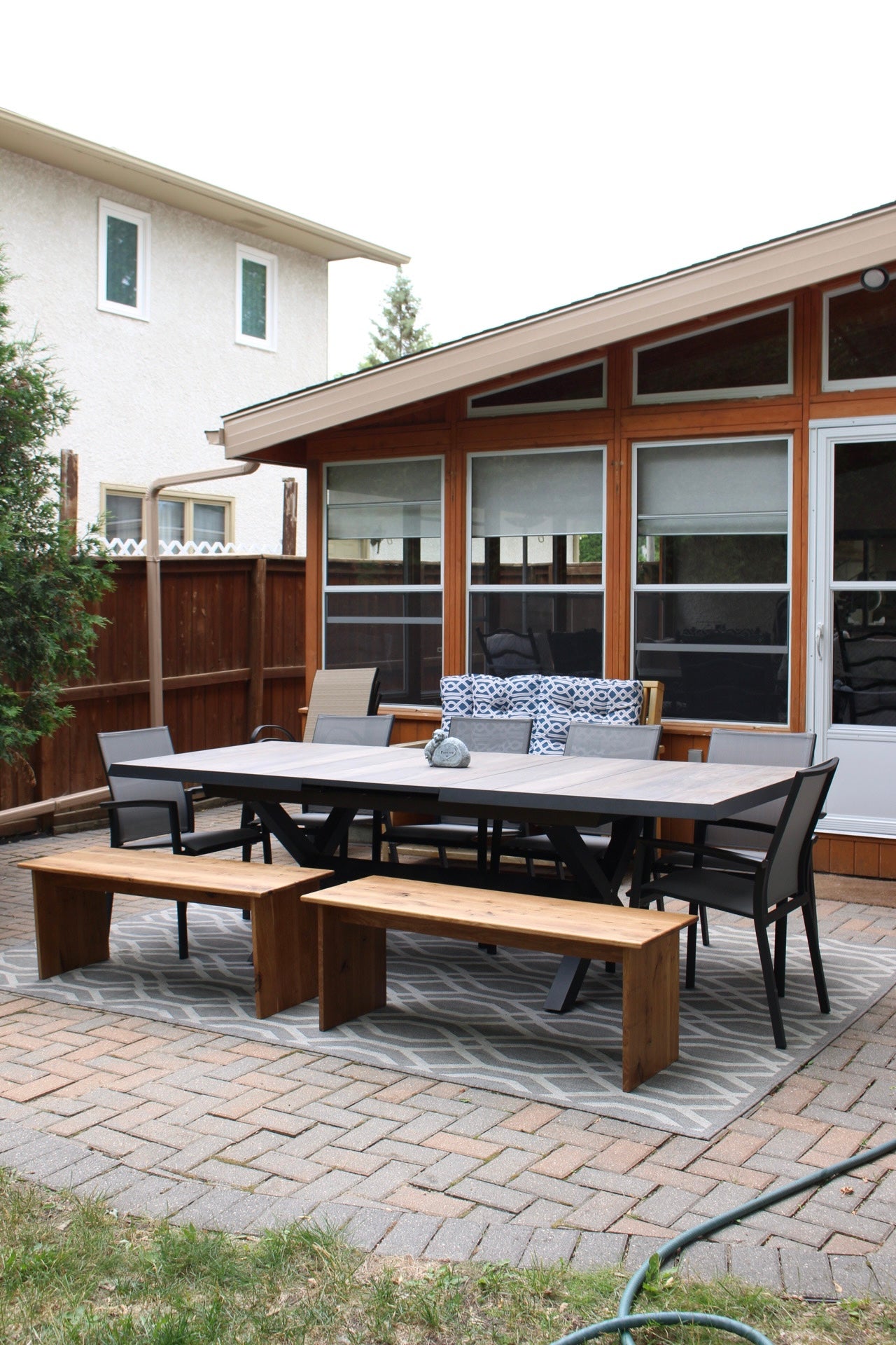 Pair of salvaged local white oak outdoor dining benches