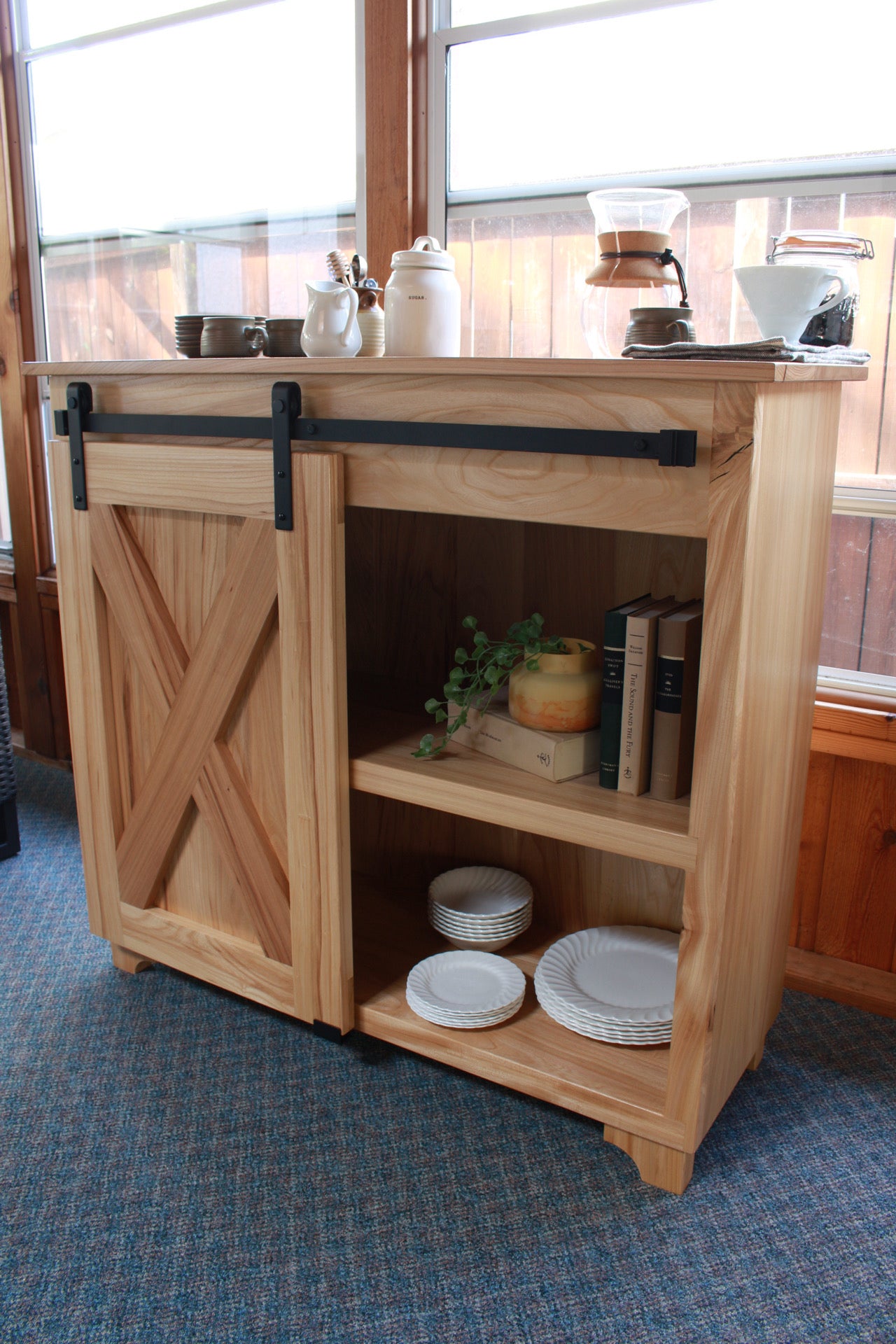 Salvaged local elm coffee station