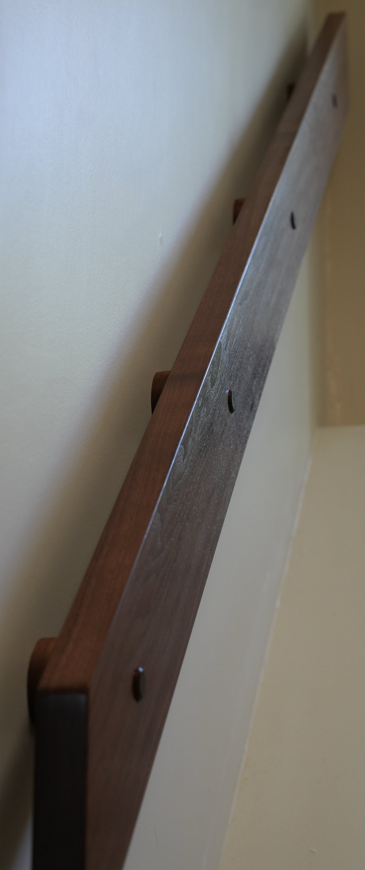 Walnut handrails. Custom circular walnut brackets