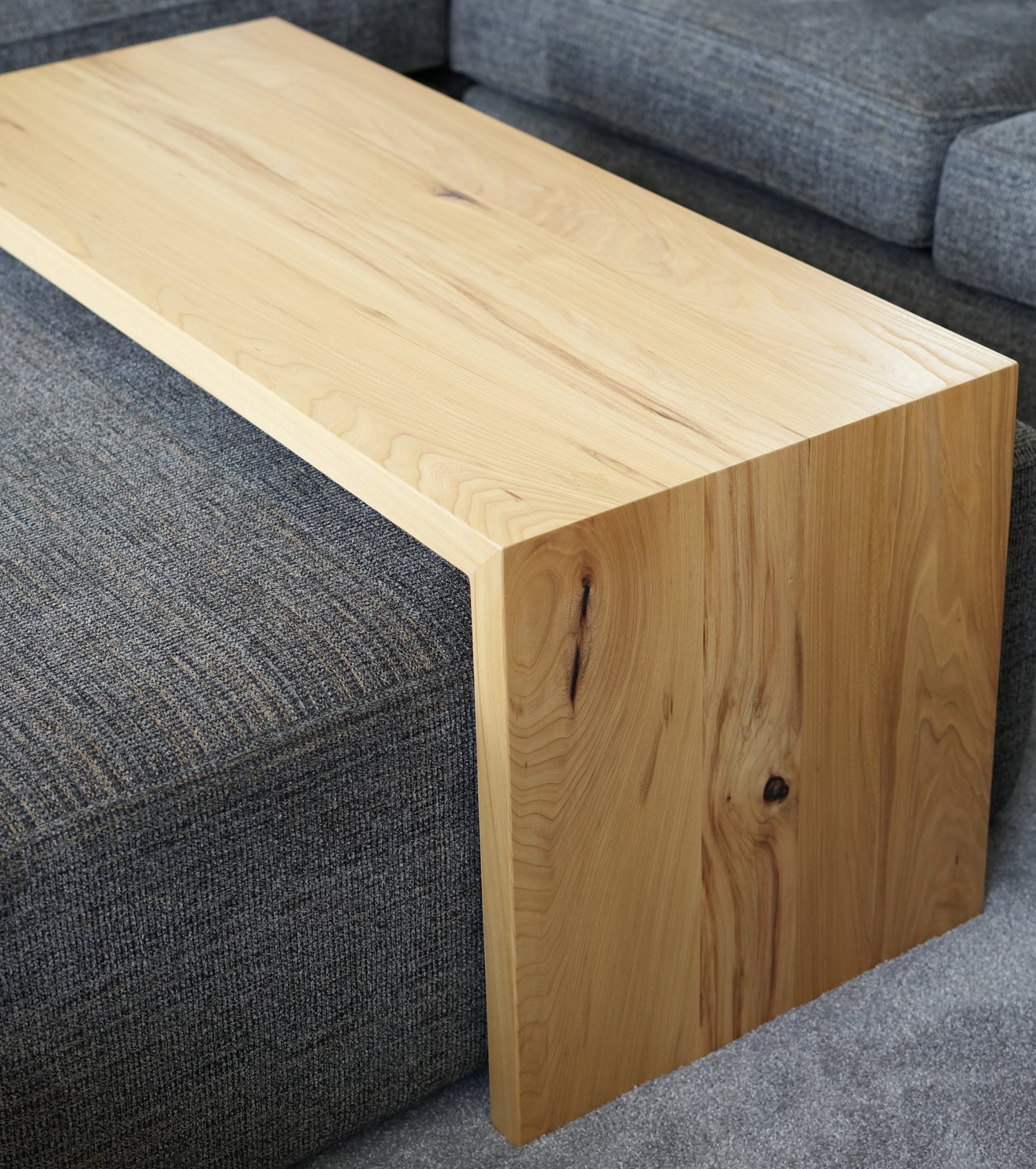 Custom-sized over-ottoman hickory coffee table