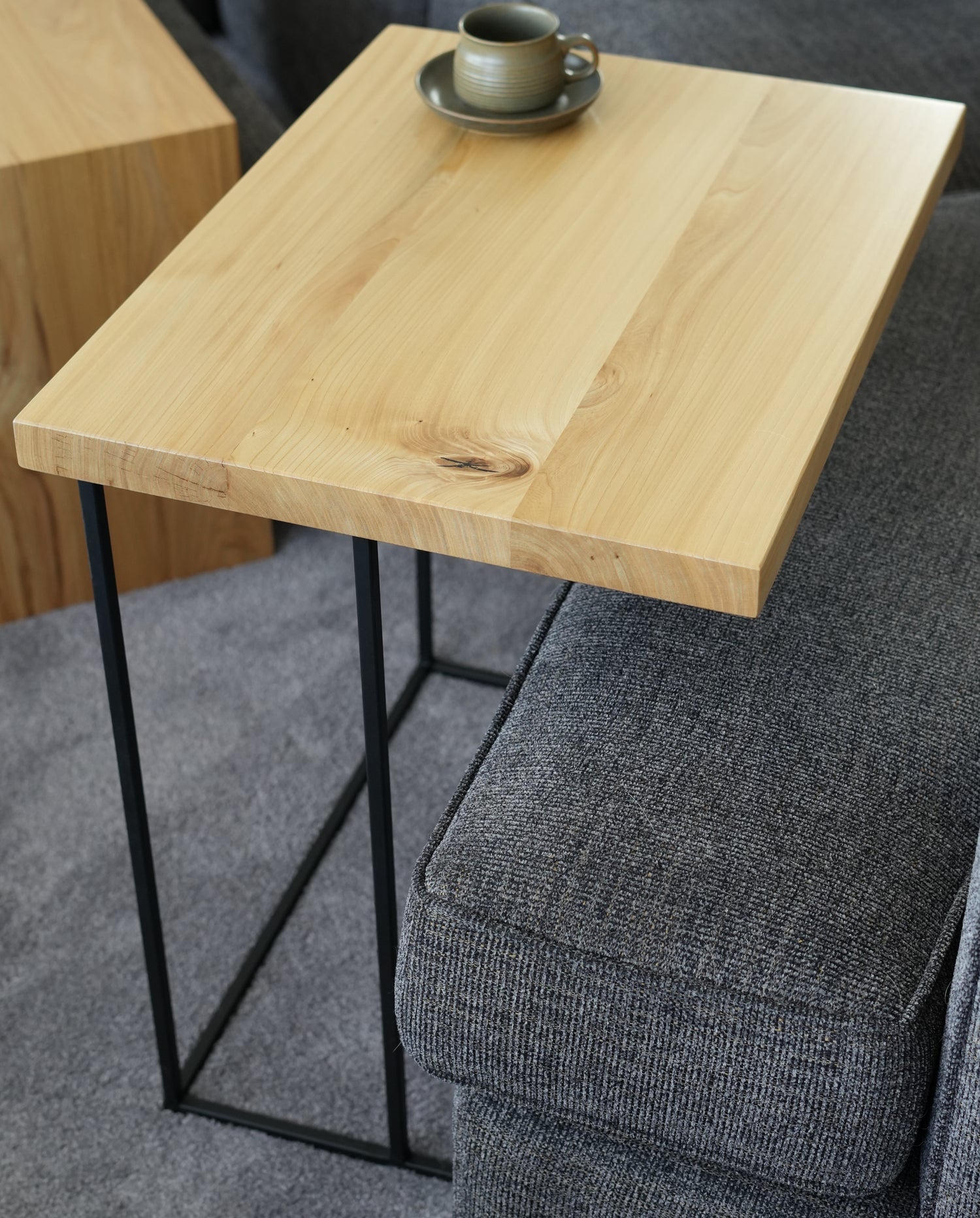 Salvaged Local elm television tray with custom fabricated steel base